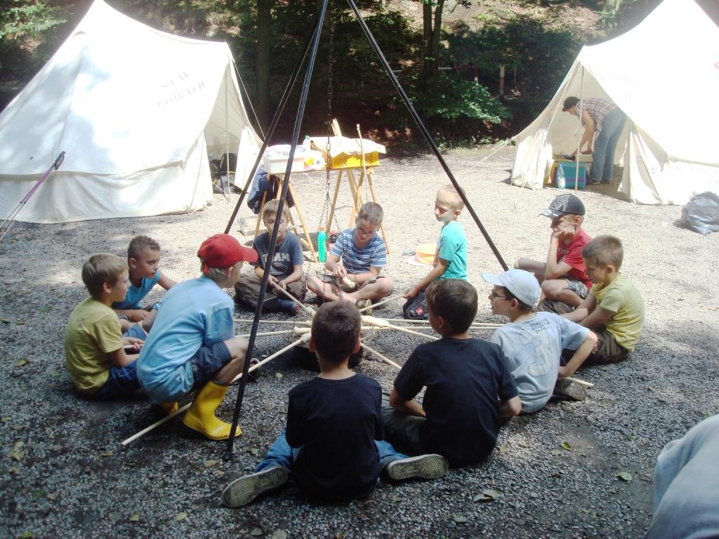 Gestartet wurde mit einer gemeinsamen Wanderung von der Brüder-Grimm-Schule zum Waldparkplatz „Zur Tränke“. Dort gab es für die Kinder die Möglichkeit auf gespannten Slacklines zu turnen, Gras-Ski zu fahren, im Wald zu spielen und vieles mehr. Auch waren mehrere Indianer-Tipis aufgebaut, zwischen denen gemeinsam gegrillt wurde.