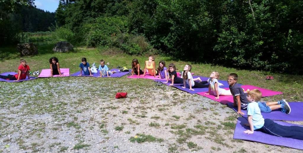Verschiedene Übungen wurden in Geschichten verpackt, wie zum Beispiel ein Besuch auf einem Bauernhof, wozu die Übungen Baum, Katze und Kuh durchgeführt wurden. Abschließend wurde zu einer Fantasiegeschichte gemeinsam entspannt und danach gab es ein Picknick und gemeinsames Malen