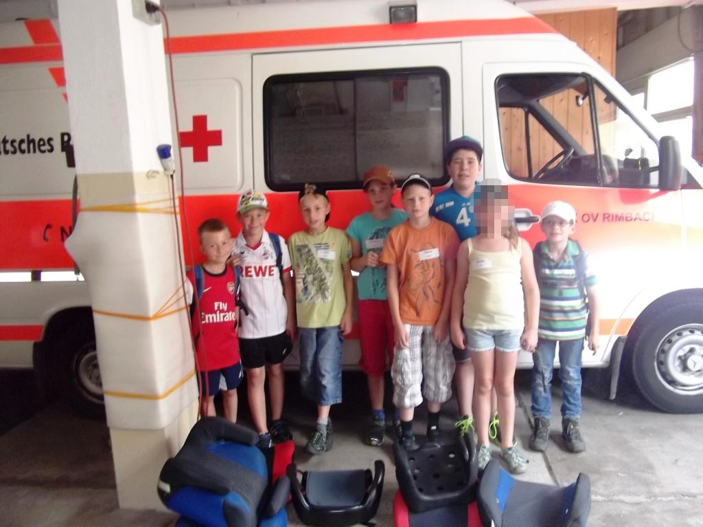 Bei der Rimbacher Ortsgruppe des Deutschen Roten Kreuzes begannen die Kinder mit ein paar Kennenlernspielen. Anschließend lernten die Kinder alles Wichtige rund um die Erste Hilfe, erfuhren wie man fachgerecht einen Fingerkuppenverband herstellte und wie zur Wundversorgung Kompresse und Verbandspäckchen anzulegen ist. Ebenfalls wurde alles Wichtige zum Notruf 112 besprochen, bevor danach das Rettungsfahrzeug des DRK besichtigt wurde.