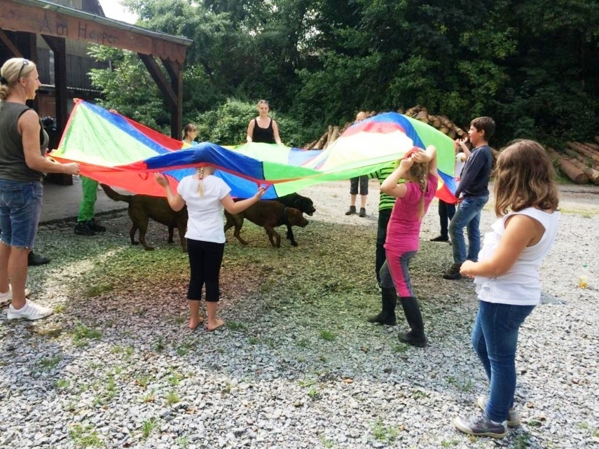 Auf einem Ausritt mit Pferden und Hunden zur Horst-Winkler-Hütte gab es auf dem Weg dorthin verschiedene spannende Rätsel zu lösen. An der Hütte hatten die Kinder die Möglichkeit an unterschiedlichen Spielen teilzunehmen.