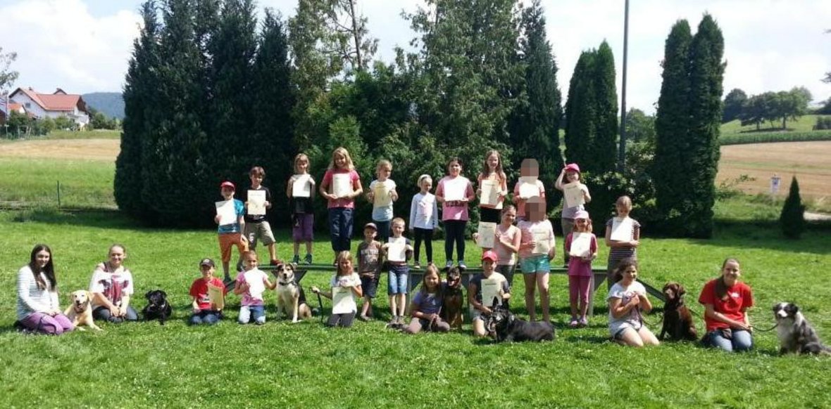 Beim Verein der Hundefreunde konnte nach der Begrüßung ein aufgebauter Trainingsparcour mit und ohne Hund durchlaufen werden. Anschließend bekamen die Kinder eine Vorführung im Bereich Schutzdienst und den sicheren Umgang mit Hunden erläutert. Danach wurde ein kleiner Teil der Begleithundeprüfung abgehalten, dabei wurden ein theoretischer und ein praktischer Teil als Spaß-Prüfung durchgeführt. Natürlich haben alle teilnehmenden Kinder, welche mit viel Eifer bei der Sache waren, bestanden und bekamen abschließend eine entsprechende Urkunde überreicht.
