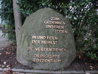 Hervorzuheben ist außerdem der Gedenkstein von der Ortgruppe der Vertriebenen für ihre Toten in und fern der Heimat, welcher sich im Bereich der Friedhofshalle befindet.