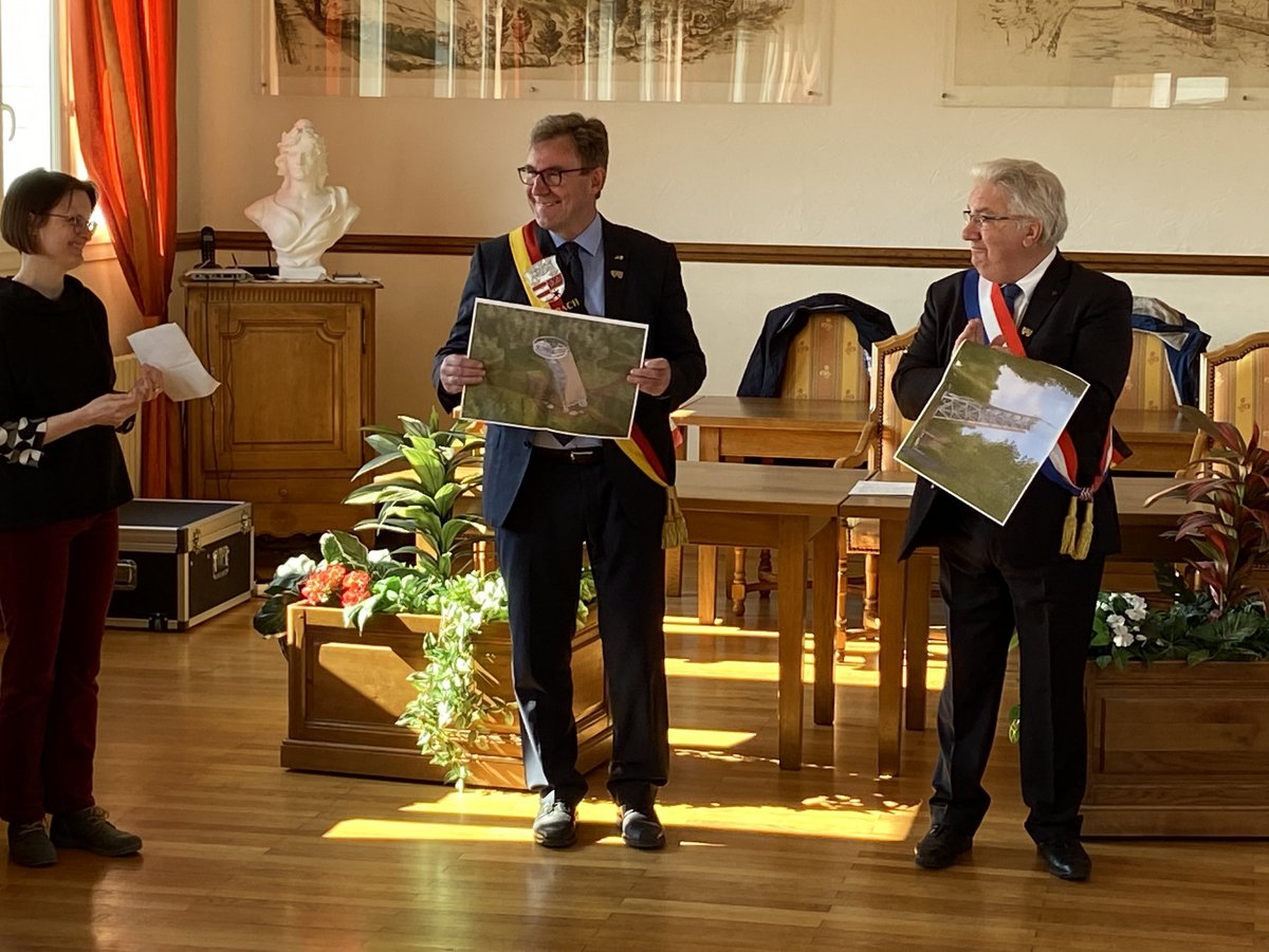Holger Schmitt lud am Ende seiner Rede den Bürgermeister von Thourotte ein, im Sommer 2022 nach Rimbach zu reisen, um den neuen Trommturm zu bestaunen. Am Ende der Zeremonie wurden Geschenke ausgetauscht. Nach einem weiteren leckeren gemeinsamen Essen fuhr die Delegation wieder nach Hause.